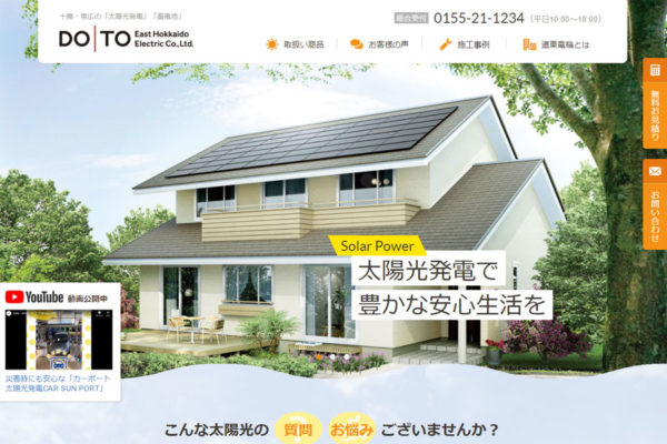 2020.02.26 お知らせ 太陽光発電ウェブサイトを開設しました! この度、太陽光発電WEBサイトを開設いたしました。 今後、太陽光に関するお得な情報や商品、イベント情報など発信していきますので、どうぞよろしくお願いいたします! Facebook更新しておりますので、そちらもぜひご覧ください。 道東電機Facebookページ 道東電機インスタグラム